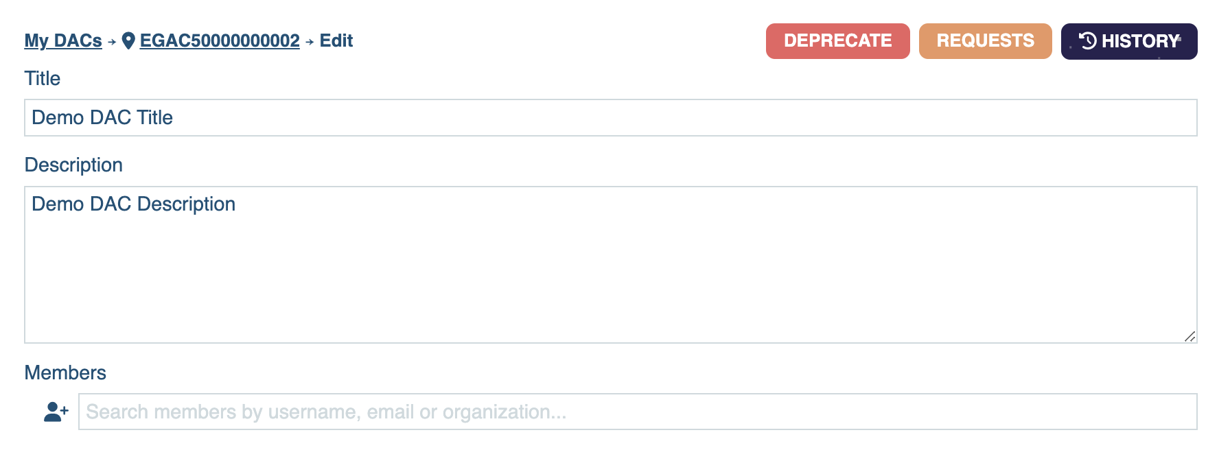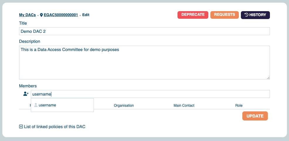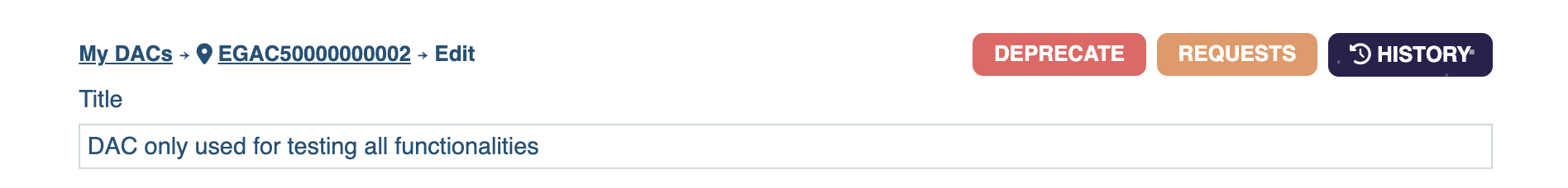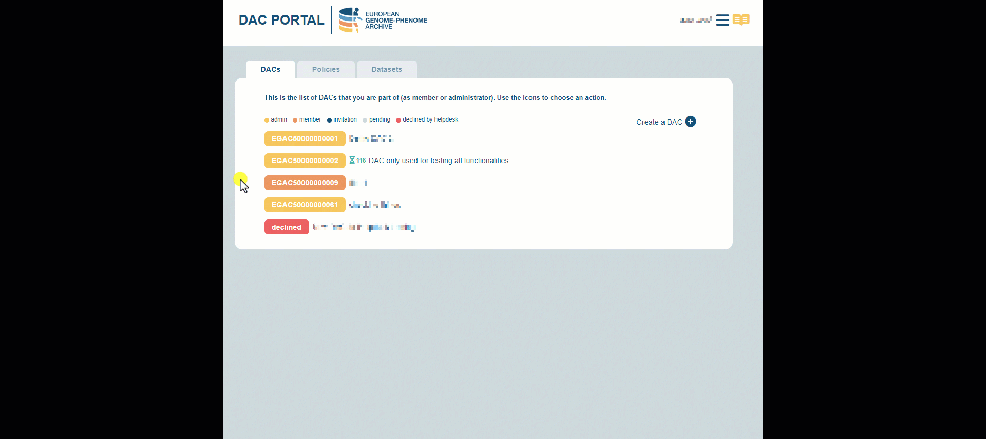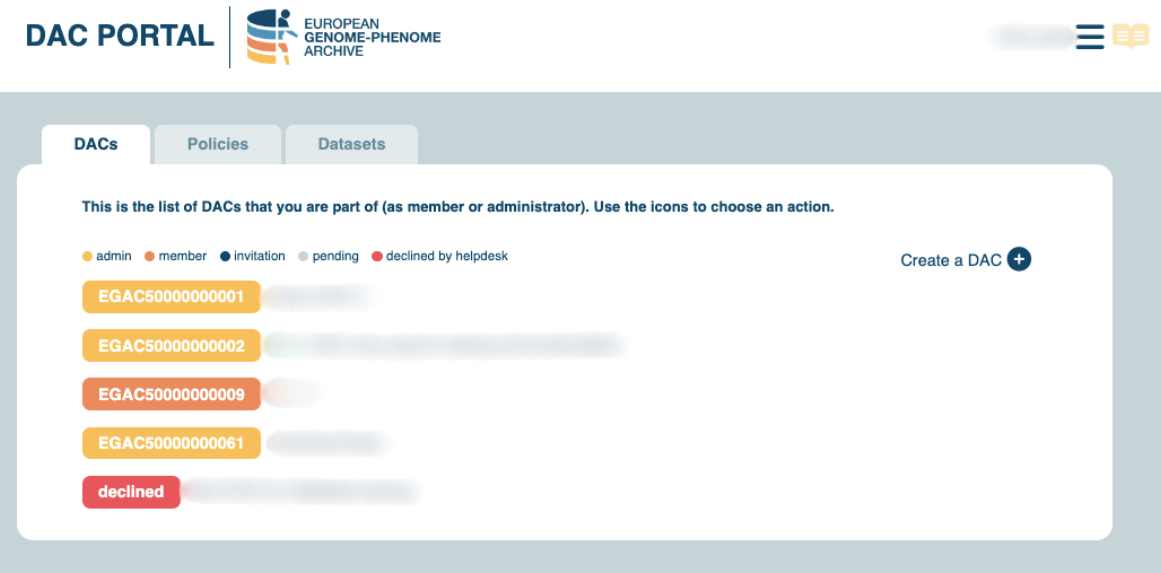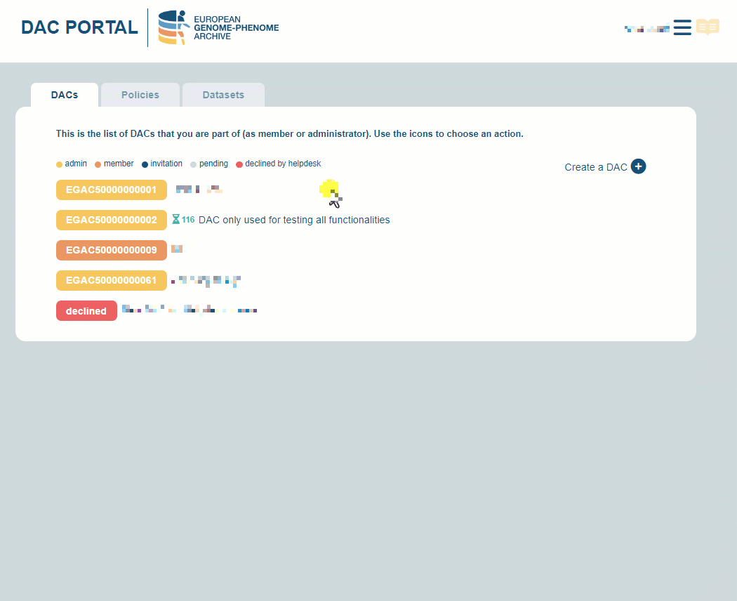 - You will have to wait until the Helpdesk Team validates the creation of your DAC. Once approved by Helpdesk, your DAC will be assigned with a persistent identifier (EGAC).