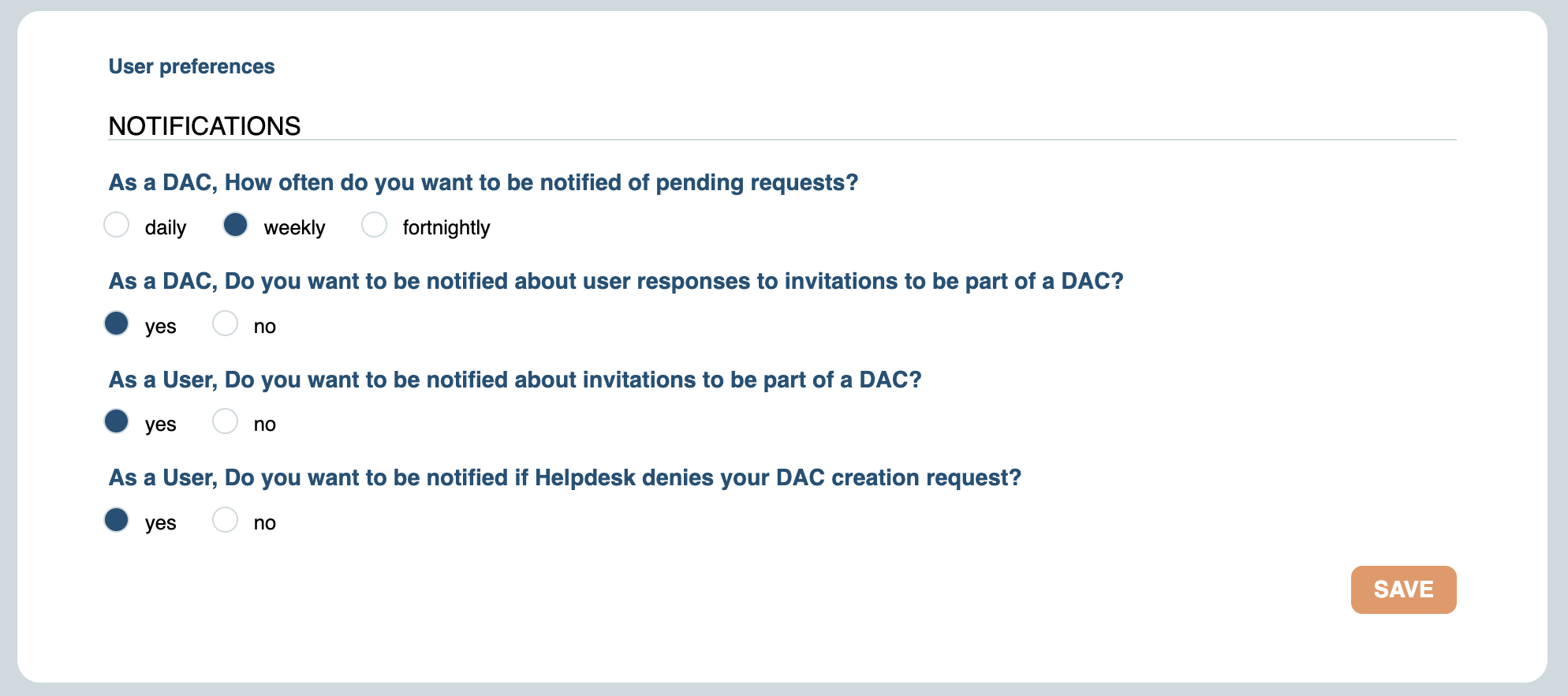 As a DAC member, you will be able to decide whether you want to receive the DAC notifications or not. For that, go to the top-right corner menu, select User Preference.