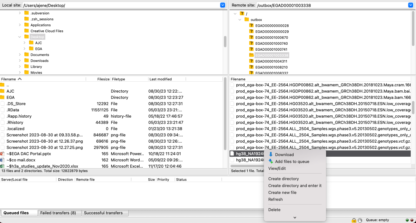 You can also use the SFTP command line to securely download files from the EGA Outbox.